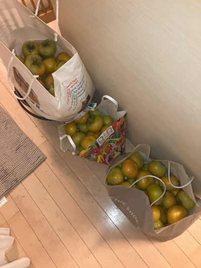 帰宅後は柿の収穫、剪定実施。剪定は多分11月が良かったんですけど、実を取るのに枝を切っちゃったほうが早かったので剪定も一緒にしてしまいました。さっぱりして気持ちいい。作業完了を急いだのですが、夜になってしまいました。