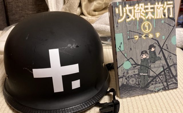 DIY シュツルムヘルム(少女終末旅行) 少女終末旅行のキャラクター、ユーリが被っているシュツルムヘルメットの制作を娘に依頼されました!喜んでかぶっております。 2025.10.11 DIY書籍、漫画、アニメ、映画、音楽等
