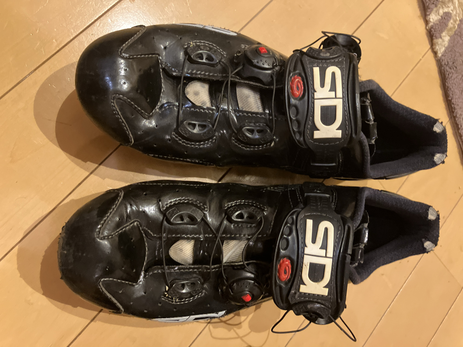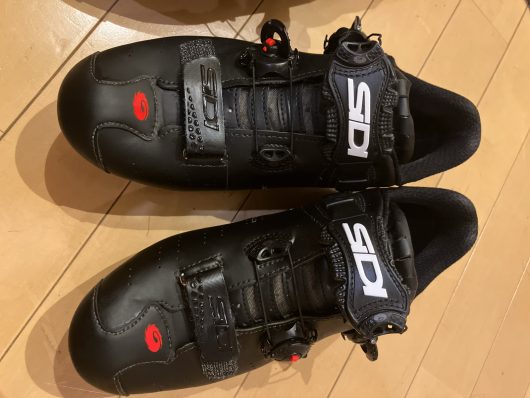 本日、zwiftで2年以上の間、足に慣らしてきたSIDIを外走り用にしました。問題なく180km走れました。ヘタってないのでしっかり力がかかる気がします。この古い方はzwift用にします!