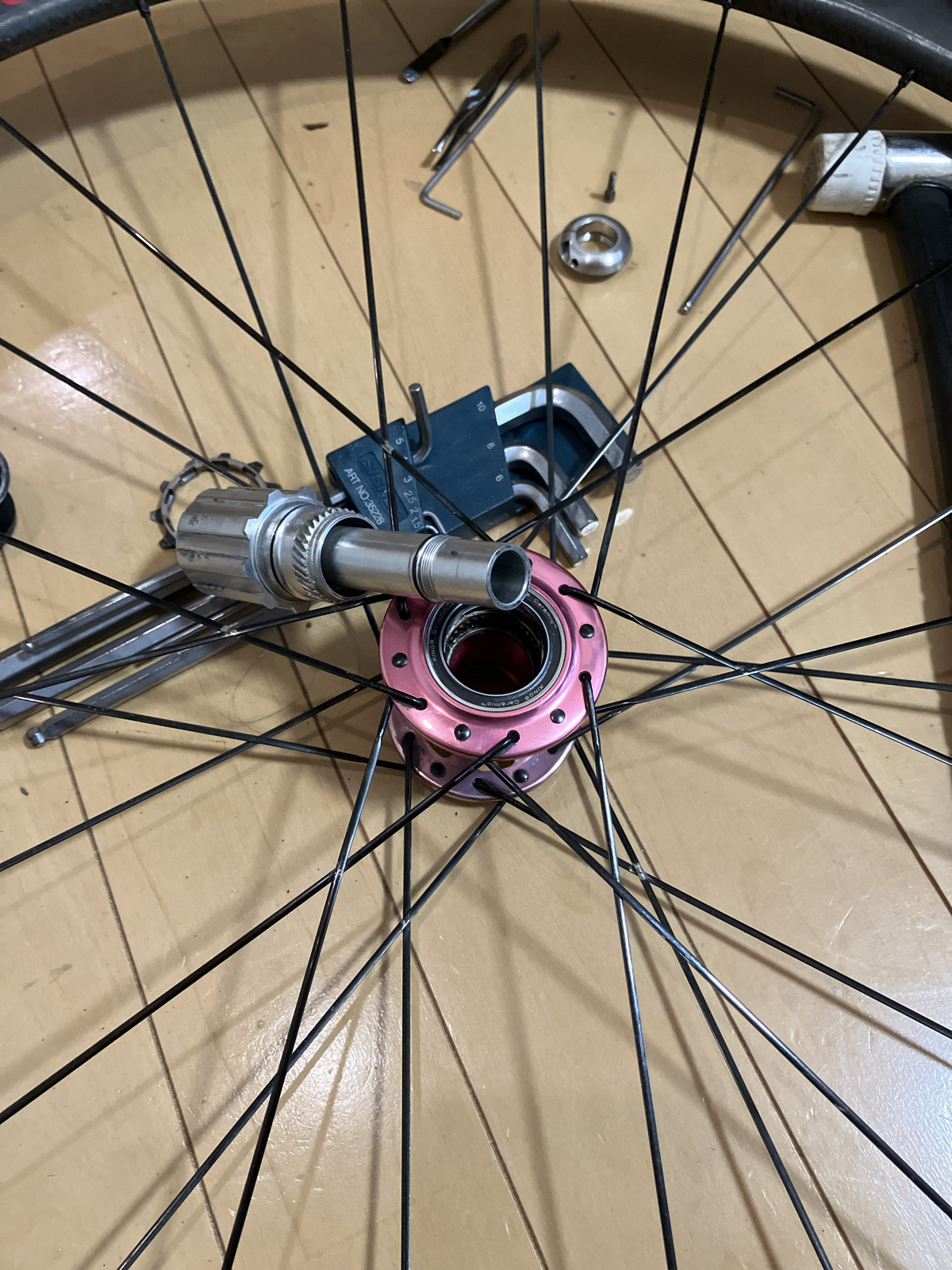 CHRIS KING ハブ整備(念のため点検) DIY 2025.10.17 先日、分解整備したクリスキング、整備後に300km以上走ったので、変なことになっていないか念の為点検。DIYでバラしたりしたりしたものは、面倒くさいけどこういう再点検することでミスに気づけたりします。 全く問題なくて良かった。
