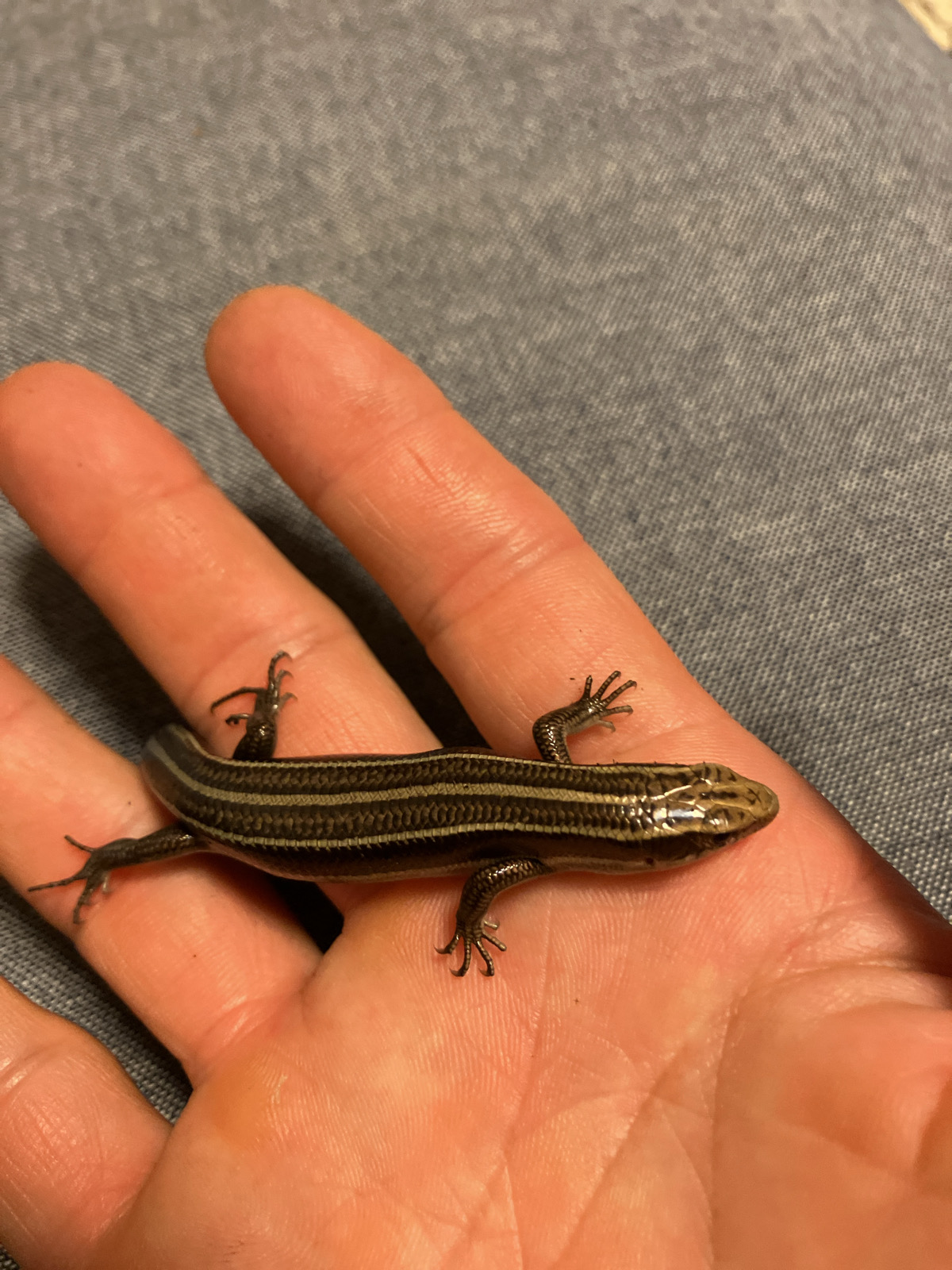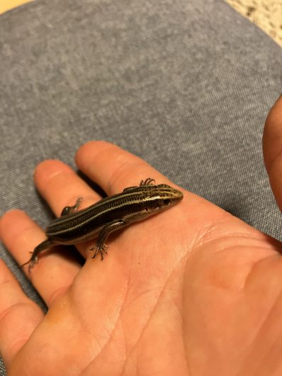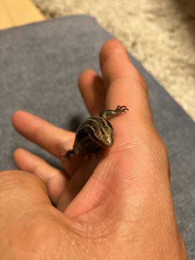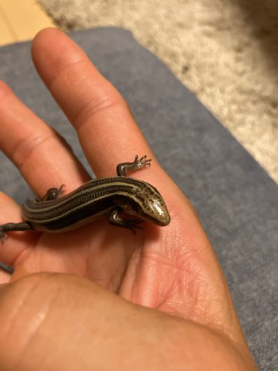 今日のニホントカゲ(ガビル2世) 家族のこと 2025.10.19 ニホントカゲも元気よく育ってます。初代ガビルの名を引き継いでガビル2世になったそうです。人馴れしすぎて、全く逃げません。人工飼料もミルワームもパクパク食べるのでぷくぷくに太ってます。