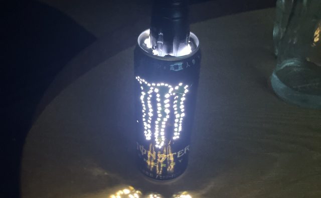 モンスターエナジーの缶に穴を開けて、なんだか凄いもの作ってました。これでもお年頃の女子なんですよ・・・orz