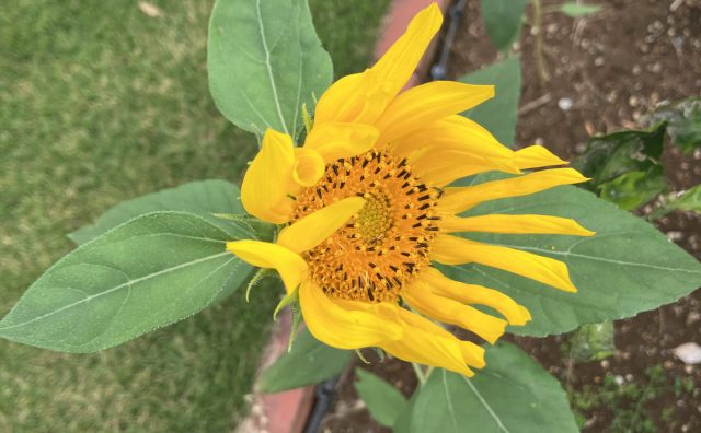 またひまわりが咲きました。今年できた種でもう一度咲いたひまわり。