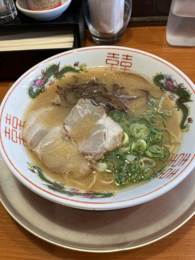 ガツンで博多豚骨ラーメン。替え玉3回。シーズン中もわがままボディでしたが、もうシーズンオフだし。
