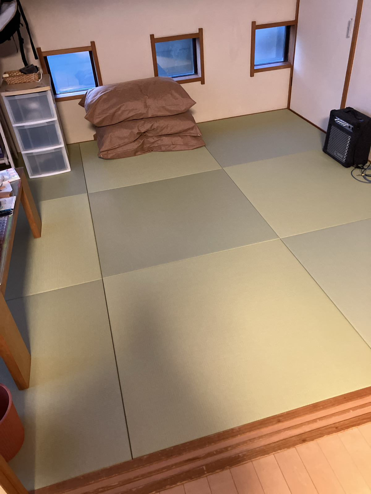 大分老朽化していたところで、娘が絵の具で赤く染めてくれましたので、思い切って新調!畳も通販で買えちゃうんですね。