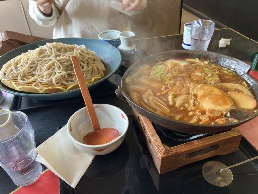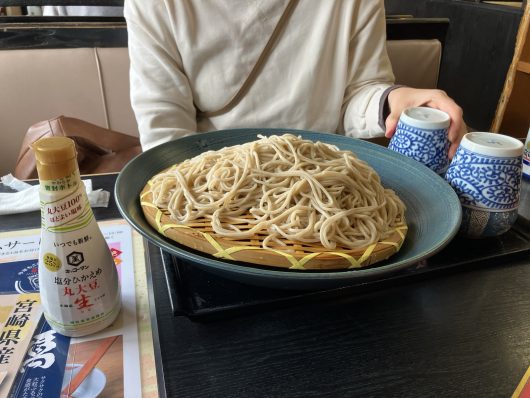 帰宅後は嫁様とすぎのや。大盛りにした蕎麦の量が凄い。喰らいやがれこの野郎感がでております。運ばれてくるときのトレーカートに乗った絵面が派手でした。