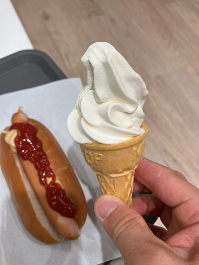 ホットドック100円、ソフトクリーム50円。