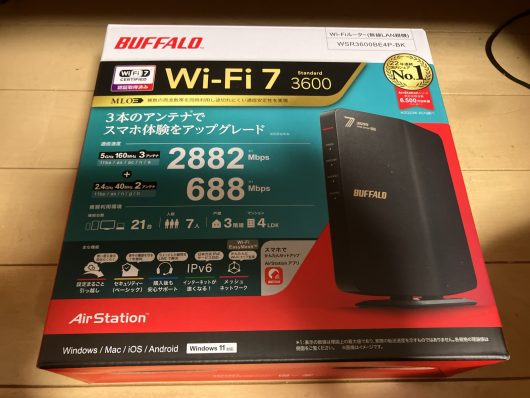 家族からWifiが切れるとの苦情を受け、無線ルーターを新調することにしました。2年ちょいで調子悪くなったTP-LINK AX1800(Archer AX23)からBUFFALOのWSR3600BE4Pへ!TP-LINKはアプリの使い勝手は良かったけど、製品は信頼度低かったかな・・・。その前に使っていたPLANEX製のは10年近く使ってたんですけど(笑)。