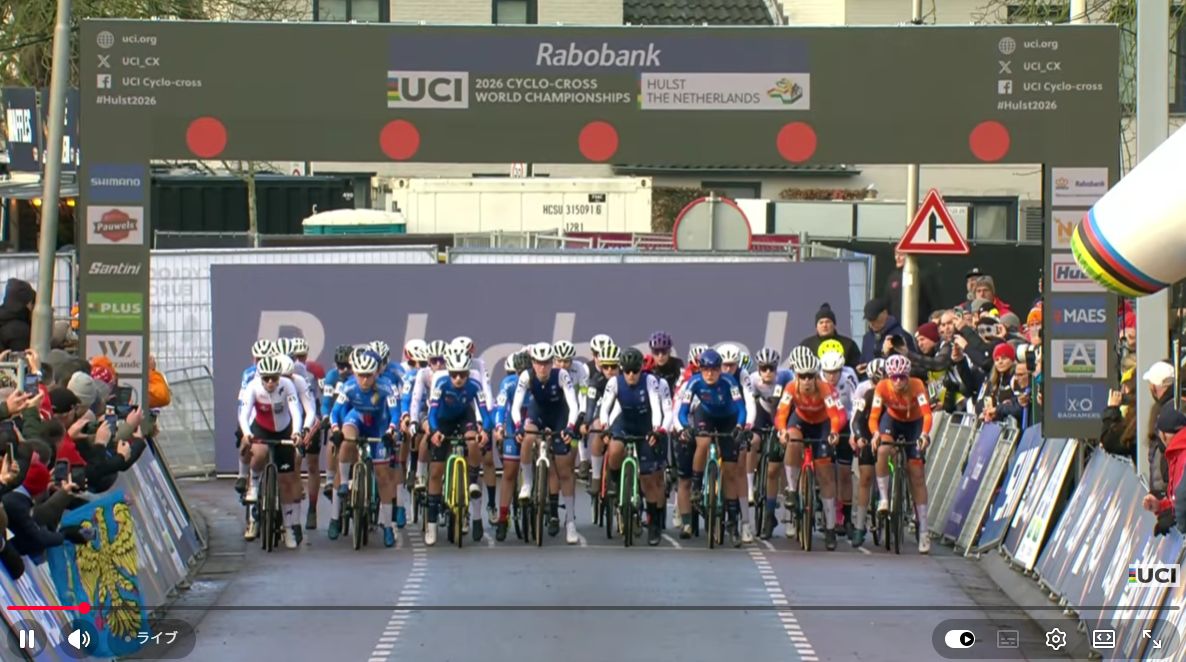 Women Junior Race 2026 Rabobank UCI Cyclo-cross World Championships 自転車(2026) 2026.01.31 コバ係長のお子様がなんと世界戦に出場!家族で応援してました。シクロクロスの世界戦見るのは初めてです。こんな凄いコースで走るんですね!なんかもう凄すぎ!うちの娘も・・・日の丸を背負って世界で戦える人になってもらいたい!