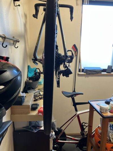 よくあるのが、19Tあたりから21、23、25、28と大きいギアにしたときにチャリチャリ言い始める症状などです。大体エンドが内側に曲がってます(私の人生で外側に曲がったことはありません。)。落車してリアディレイラーをぶつけたとか、立ちごけした後に起こるやつです。すごく曲がると、一番内側のギアに入れたとき、スポークにリアディレイラーのプレートが当たり始めたりします。こうなると、リアディレイラーのDi2の調整や、ワイヤーの調整ではもう治らないんです。登りの時だけチャリチャリ音を立てている自転車が居ると、そのエンドを直してぇとか内心思ってたりします。「失礼ですがあなた人生損してるぜ」。