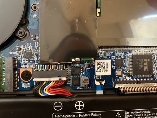 裏面カバーはすぐに外れるのに、キーボード固定ネジが見当たりません。大体「鍵マーク」か「K/B」って印字されていたりするものなのですが。固定ネジがすぐに見つかるようであればキーボードを購入したのですが・・・。ファンかマザーボードを外さなきゃ交換できないパターンやもしれません。キートップの「B」がちょっとぐらついているのでできれば交換したかったんですが。残念ながら撤退。マザー外すほどの気概はありません。