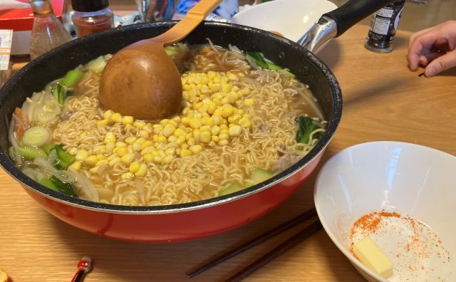 サッポロ一番味噌ラーメン。フライパンでしたw