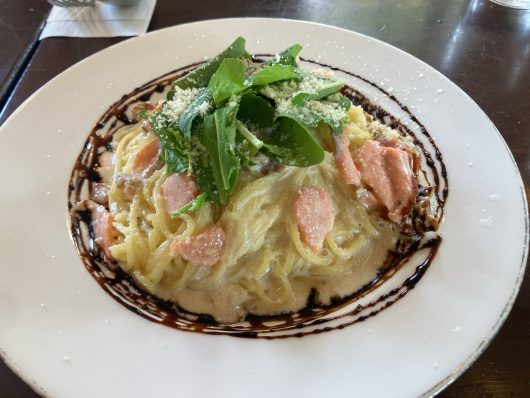 スモークサーモンとくるみのクリームパスタ。美味しい。