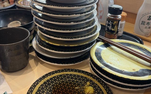 実家の父親の誕生日祝い。はま寿司。息子の食いっぷりが凄い。
